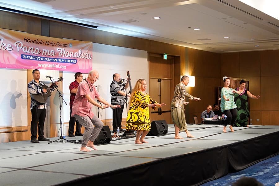 豪華ゲストを迎えてのディナーショーです。メリーモナーク出場ハーラウの生の感動をより近い距離間でお楽しみいただけます。受講された皆さんとの心地よい時間をお過ごしください。
